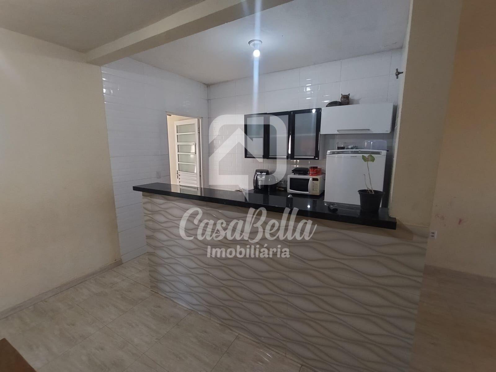 3 quartos, sala ampla, copa, cozinha, banheiro, lavanderia coberta, quarto externo, quintal, área de churrasqueira e garagem coberta para 2 carros