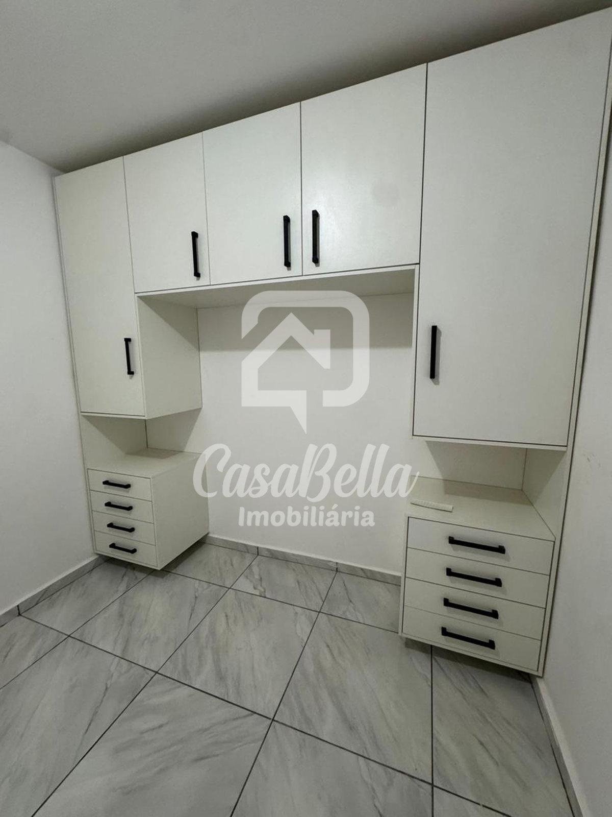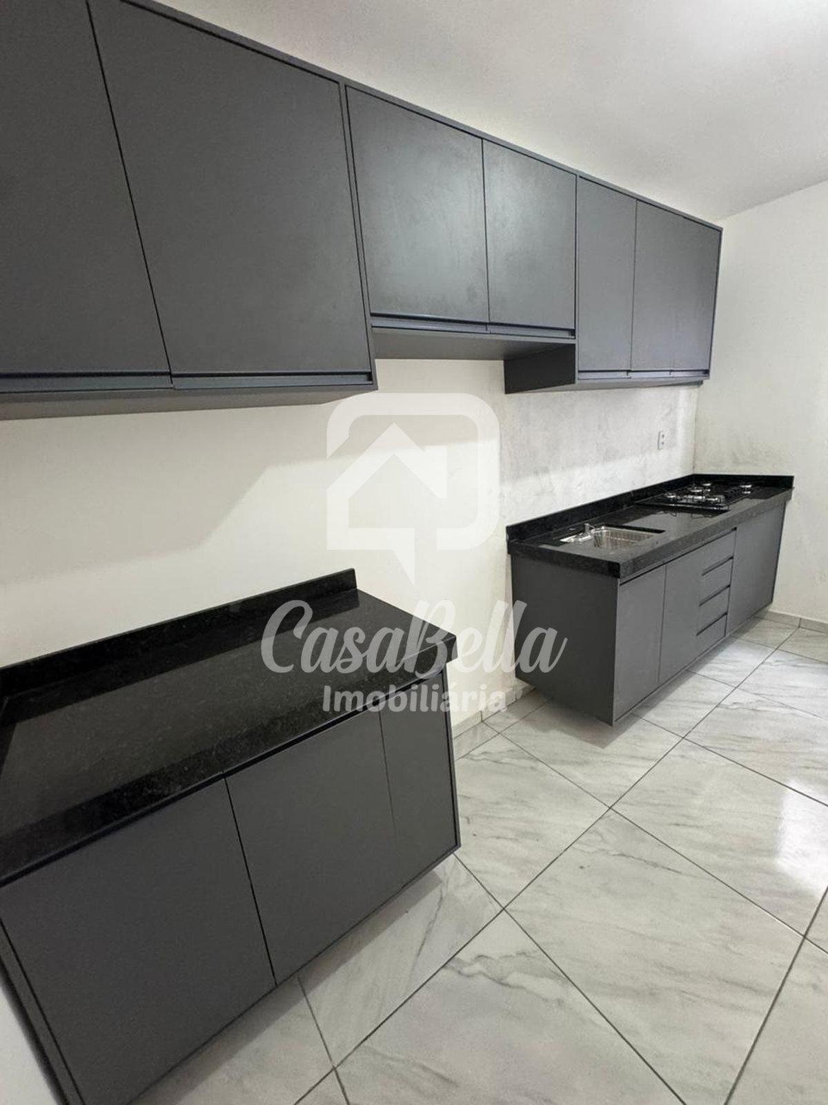 3 quartos, sendo 2 com armários, sala com painel de TV, cozinha com armários planejados e cooktop, banheiro, lavanderia com armário, quintal e vaga descoberta para carro.