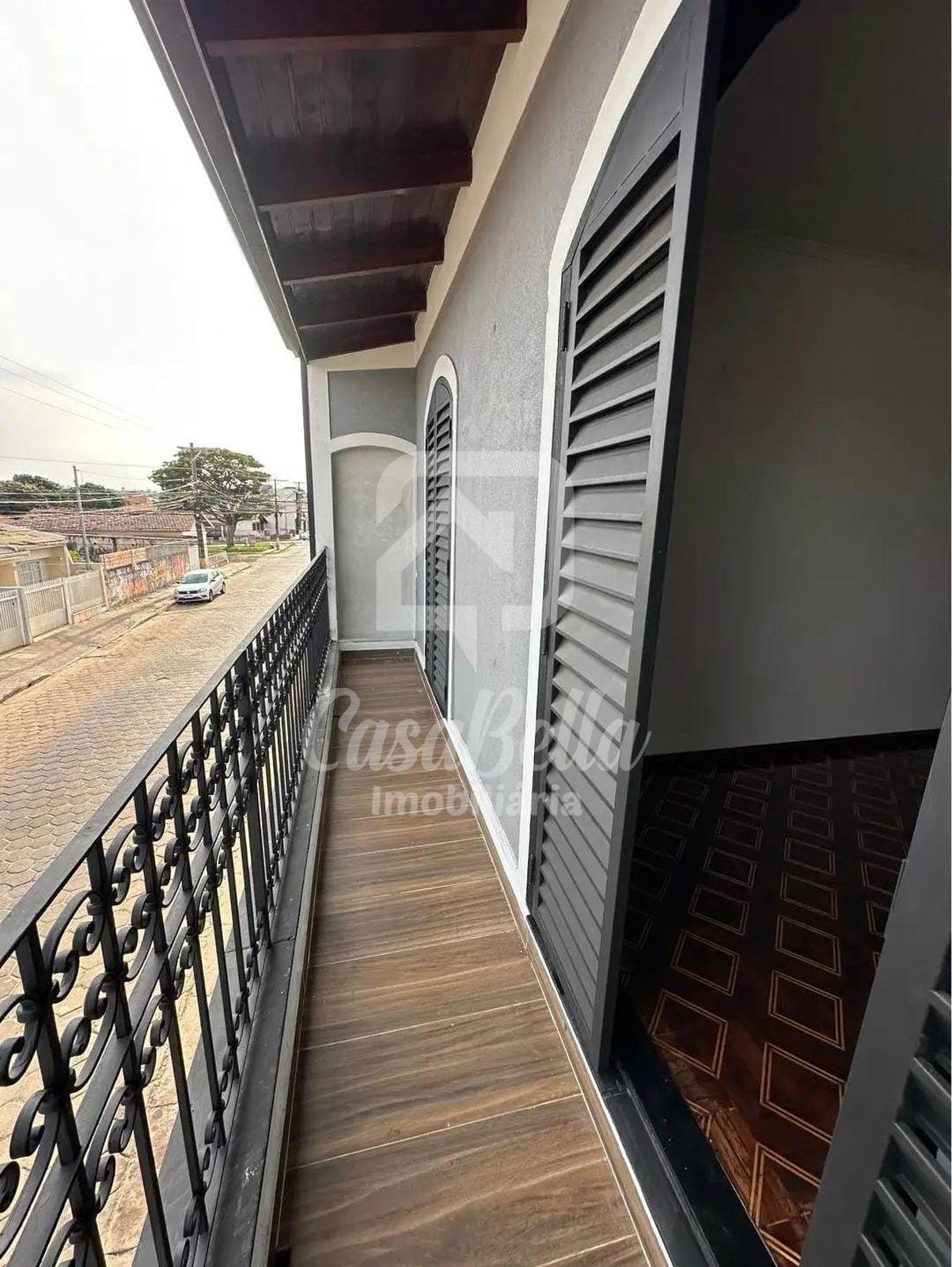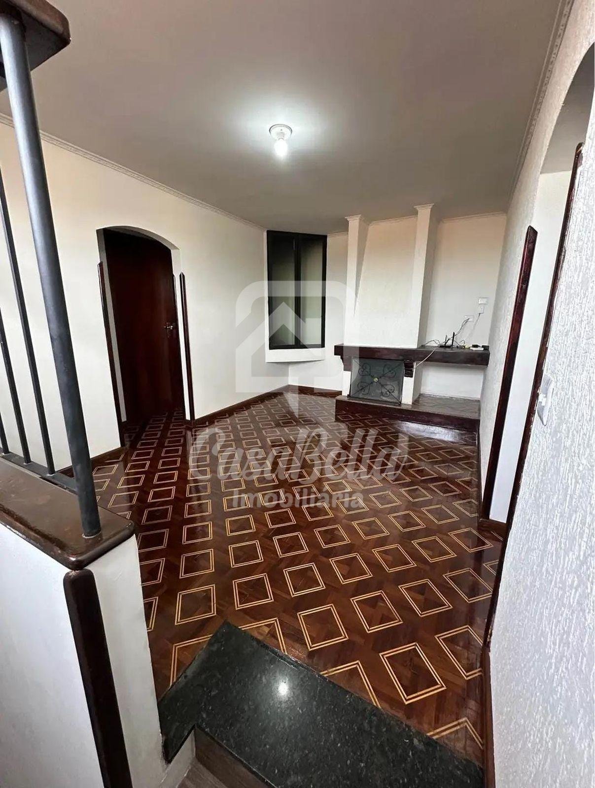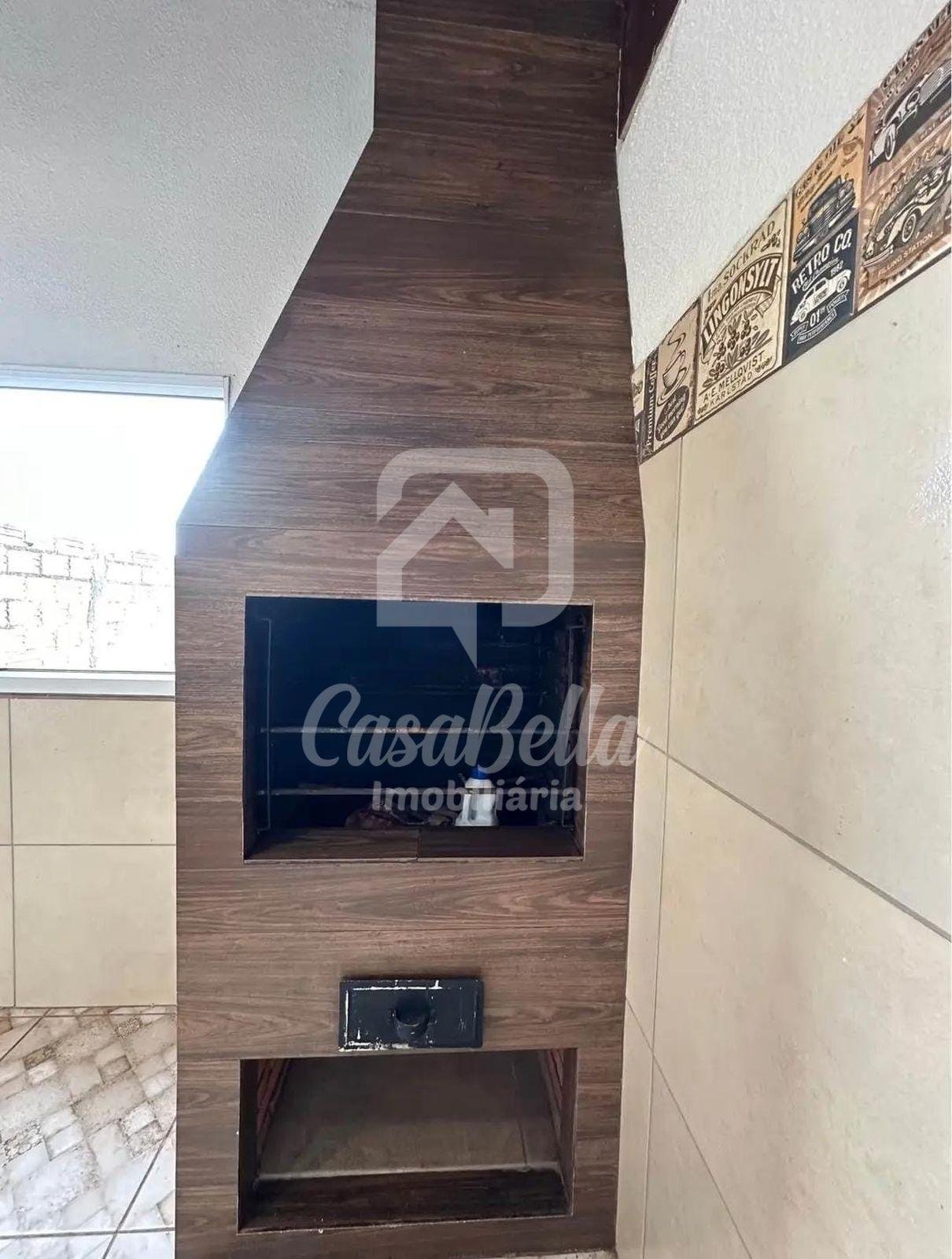 Sobrado com 3 quartos com armários, sendo 1 suíte, sala com lareira, cozinha, banheiro, área gourmet, lavanderia coberta e garagem coberta com portão eletrônico.