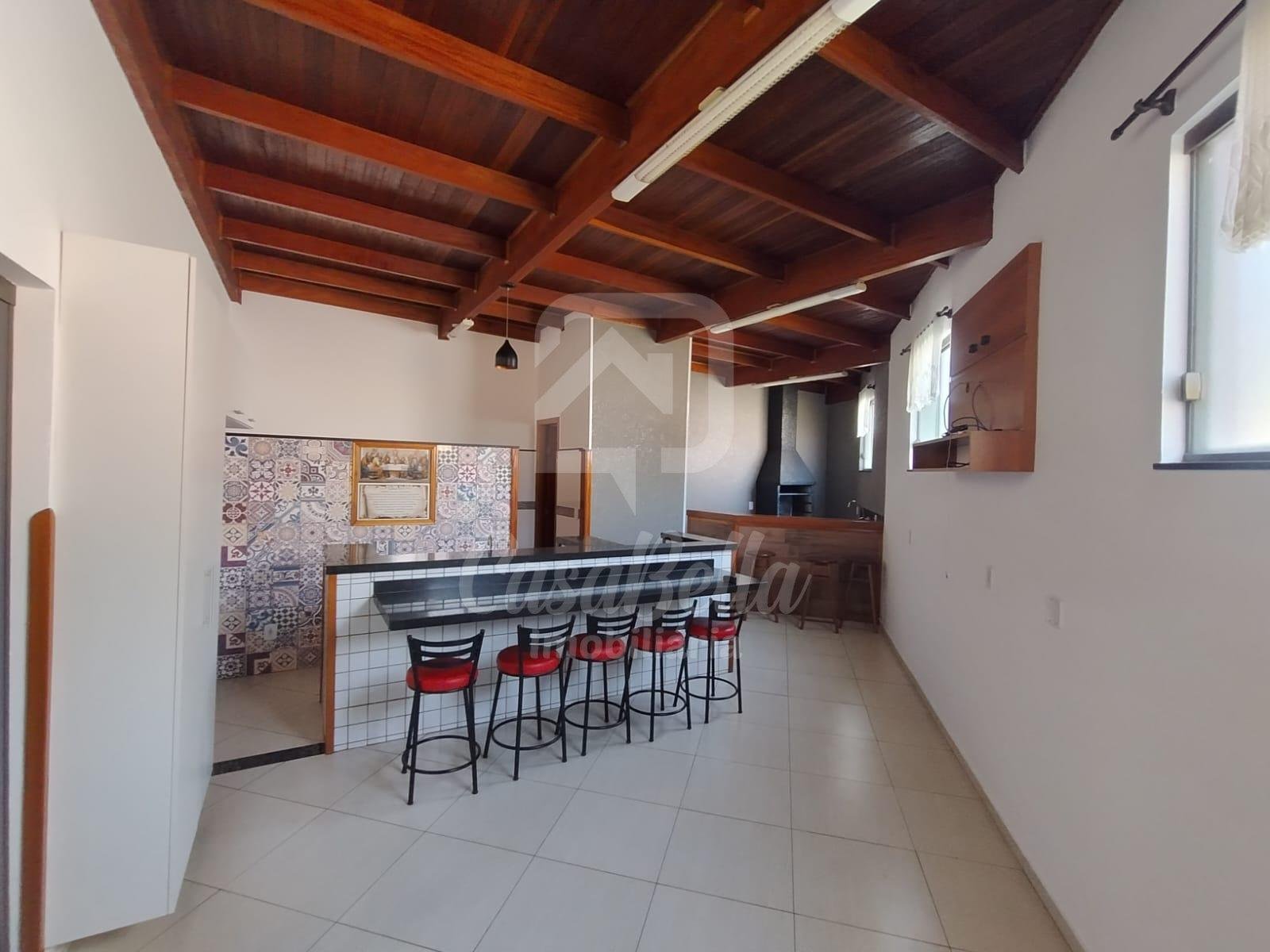 3 quartos, sendo 1 suíte, 1 com ar condicionado, sala com ar condicionado, copa com armários, cozinha, banheiro, lavanderia coberta, área gourmet com lavabo, garagem com portão eletrônico.